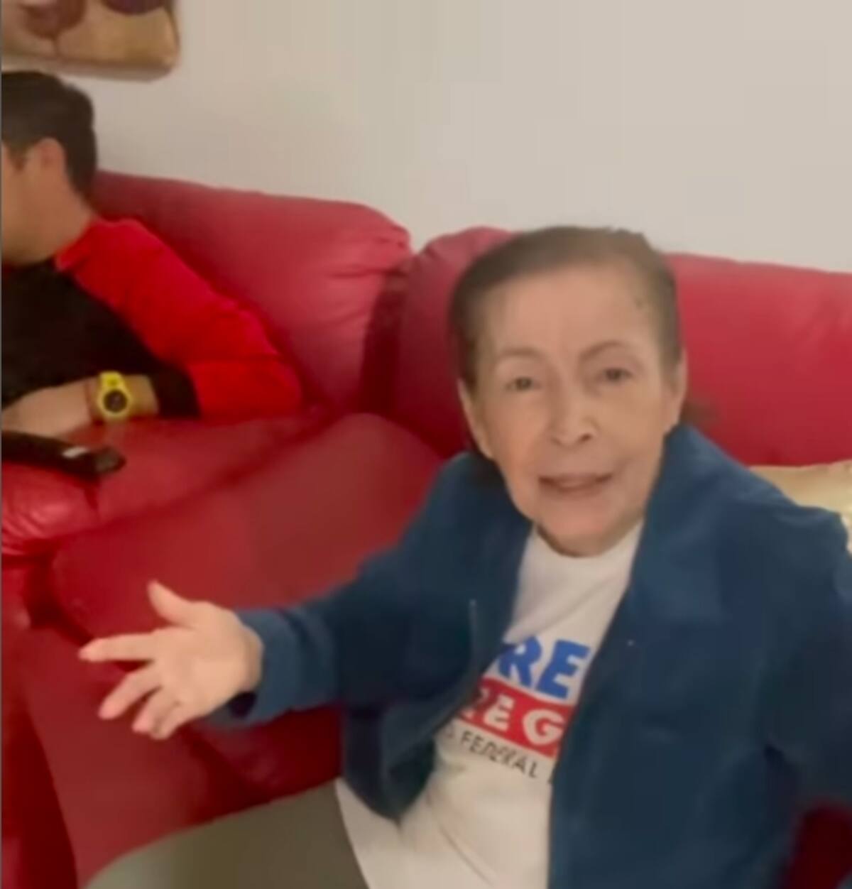 Junto a ella está Omar Chávez, hijo del exboxeador quien grabó y publicó el video. Junto a él escribió "El día de hoy tuve la dicha de ver mi abuelita querida, me dio mucho gusto verla pero por otro lado llevarme con la sorpresa de ver que mi apá la tenía bloqueada de llamadas, (marca como usario no disponible) la sigue bloqueando y me da tristeza ver a mi abuela así. Estoy alzando la voz por muchos de la familia que nos hemos guardado. Papá abre los ojos solo te pido que no te dejes engañar por las cosas que te dice tu mujer Si me causa demasiada tristeza está situación tan delicada por la que esta pasando mi familia. Eso sí, quiero dejar en claro si la relación con mi apá se está rompiendo no es por que yo ande mal ni en malos pasos, mi apá es mi apá y siempre lo voy amar, aquí está tu familia esperando que ya no te dejes envolver por las cosas que te dice tu mujer de nosotros mi tía y mi abuela".